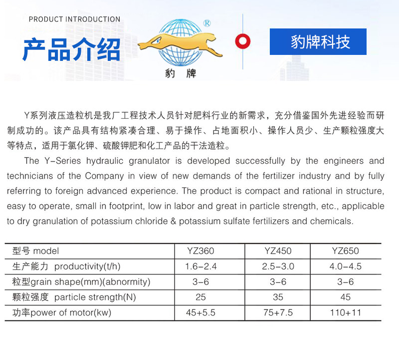 我公司生產的液壓造粒機綜合了國內外造粒技術,研發出的新的液壓造粒機。我公司的液壓造粒機有自動化程度高,操作人員少,節能低耗,環保無三廢排放,結構緊湊合理,易于操作,占地面積小、所造顆粒強度大等特點。